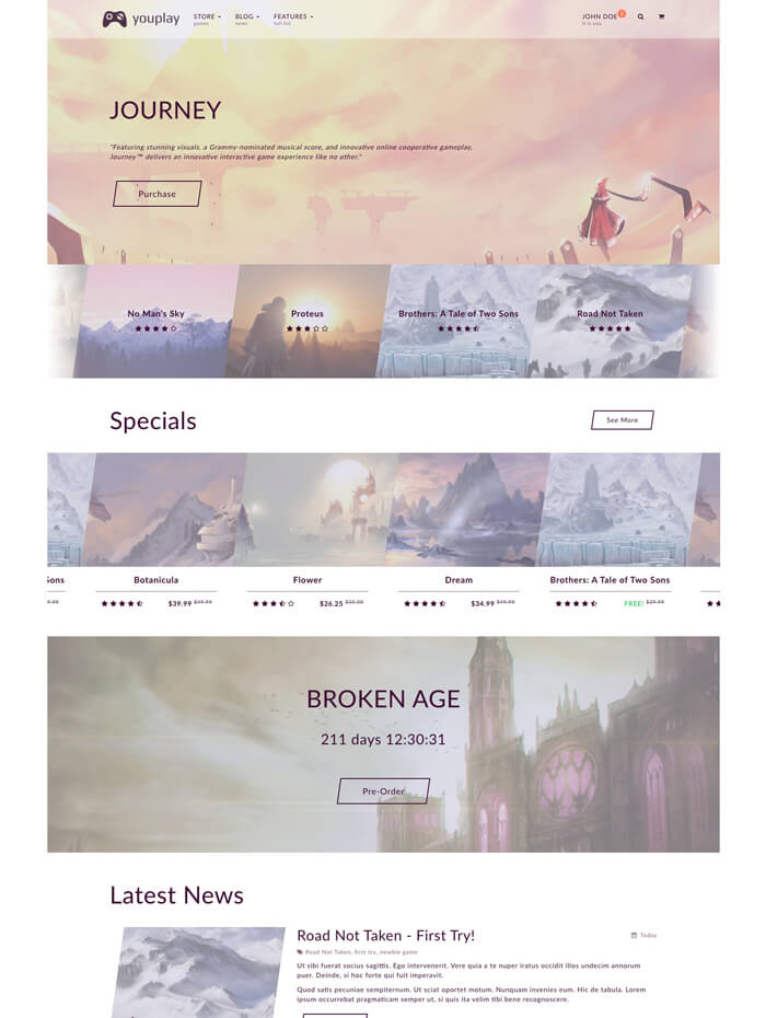 If you interested in WordPress version, see it here - https://themeforest.net/item/youplay-gaming-wordpress-theme/11959042